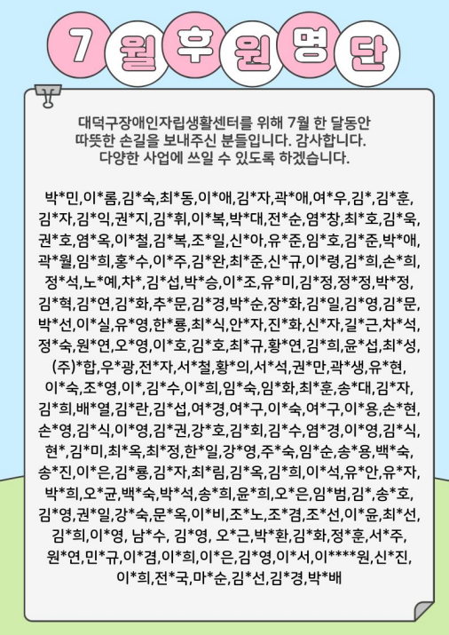 ♡ 7월 후원자 명단입니다. ♡ 상세내용