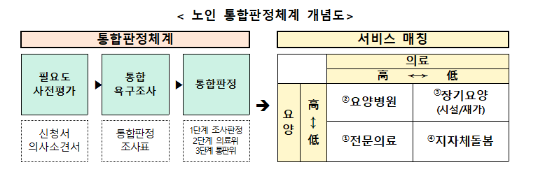 또한 지난 2월 17일부터는 고령 장애인을 포함한 노인에 대한 의료‧돌봄 필요도를 종합적으로 파악하기 위해, 기존 시범사업 판정 도구를 고도화한 통합판정조사를 도입하였다.