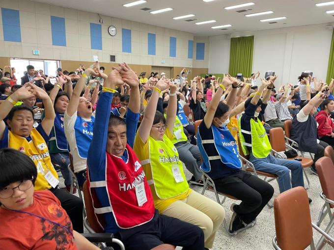 안녕하세요. 이용자분들과 제1회 대덕구청장기 장애인 한궁 어울림 대회에 다녀왔어요. 작년 대회에서도 입상을 한 경험이 있어서인지 이번 대회에서도 모두 열의에 불타있으셨답니다. 먼저 다함께 간단한 준비운동 후 한궁의 올바른 진행방법에 대한 소개를 들은 후 선수로 등록되신 이용자분들이 한분 한분 대회에 참석하셨습니다. 대회가 진행되며 입상하신 분들에게 응원과 칭찬의박수를 보내고 입상하지 않으신 분들에게는 격려의 박수를 보내었답니다. 모든 이용자분들이 즐겁게 참여한 한궁대회였습니다. |
